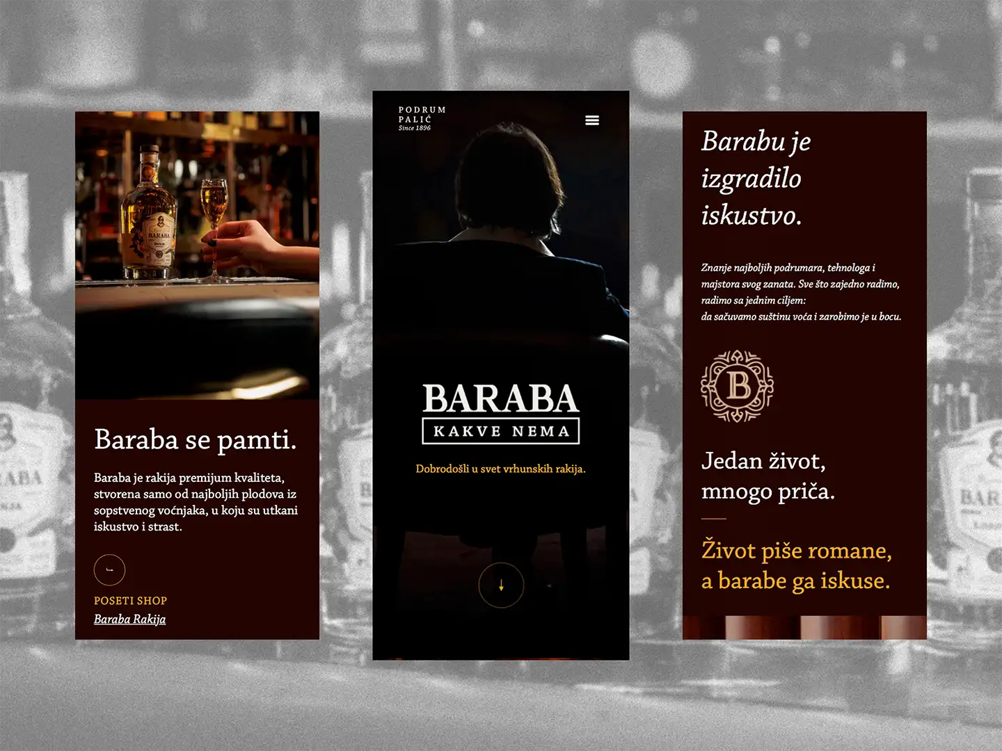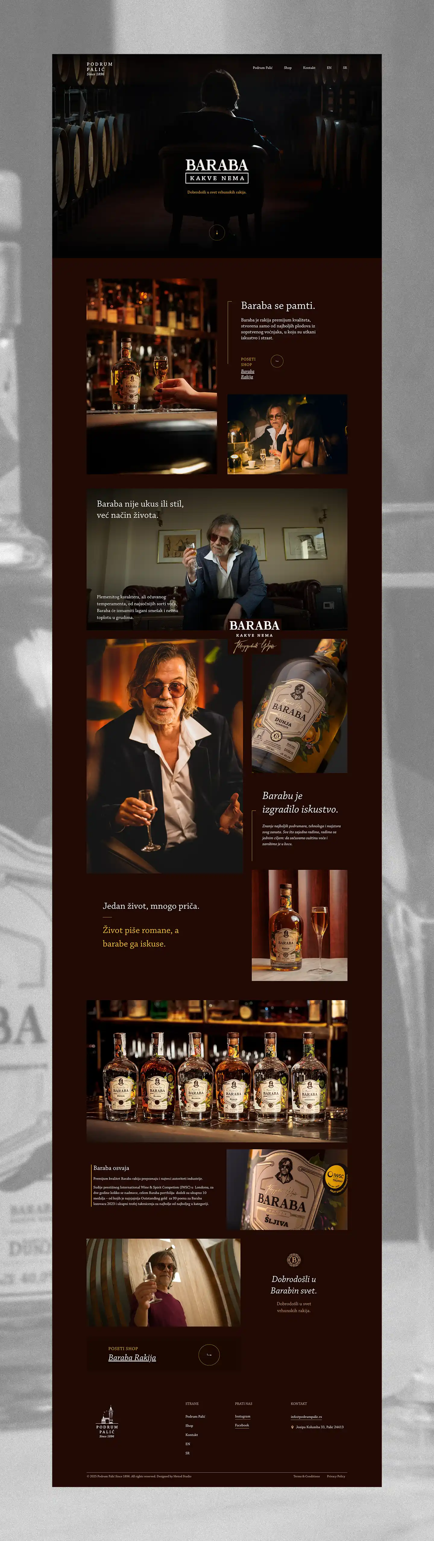 The Baraba landing page was designed as a standalone digital experience for Podrum Palić’s premium brandy (rakija) line. While the distillery’s main website offers a broad overview of their products, this project aimed to give the product its own distinctive presentation — highlighting the brand’s unique character.