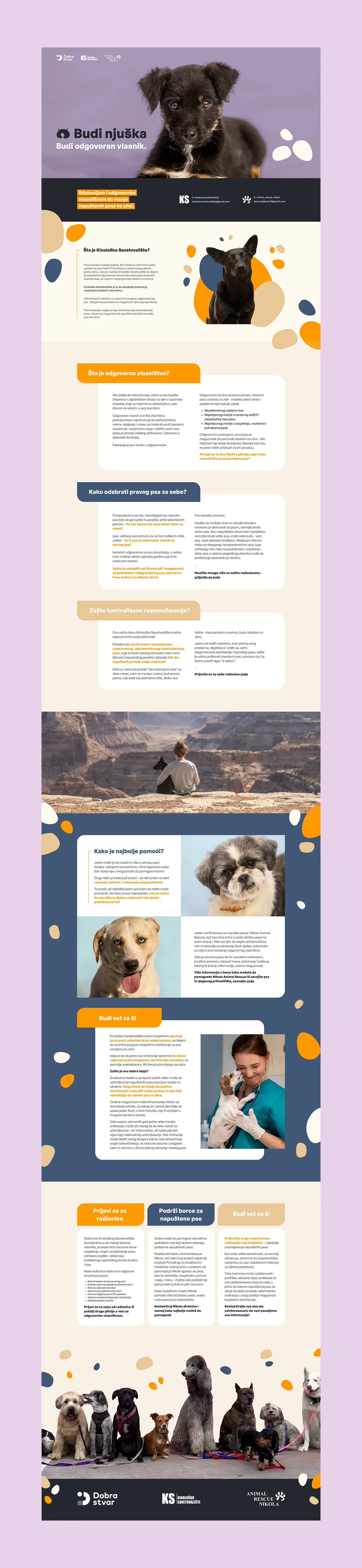 Budi Njuška is a non-profit animal rescue organization dedicated to the welfare and adoption of abandoned pets. This project was part of Dobra Stvar, a pro bono initiative to empower local non-profit organizations by Metod Brands. Special attention was given to visual storytelling through authentic photography and clear calls to action, ensuring visitors quickly connect with the organization.