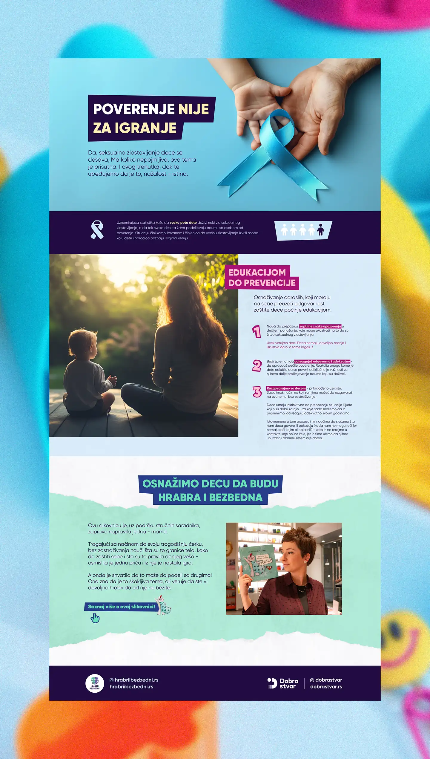 Poverenje is a non-profit organization focused on protecting children’s rights and preventing abuse. As part of Dobra Stvar — a pro bono initiative by Metod Brands — this project aimed to give the organization a strong digital foundation to raise awareness, educate the public, and provide accessible resources for those in need.